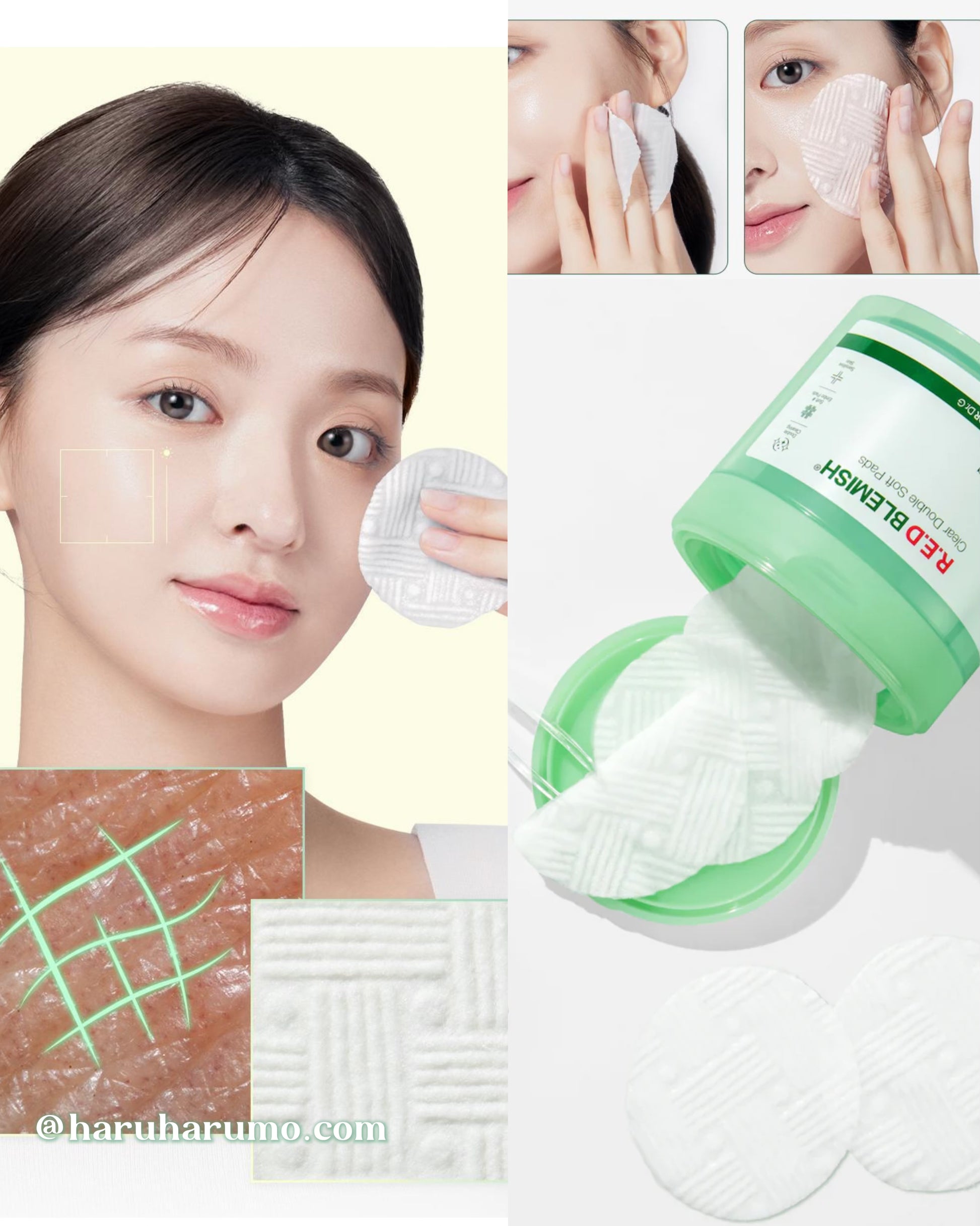 1️⃣ 【擦拭】潔面後,以打圈方式輕拭全臉(避開眼周),帶走暗沉老廢角質~